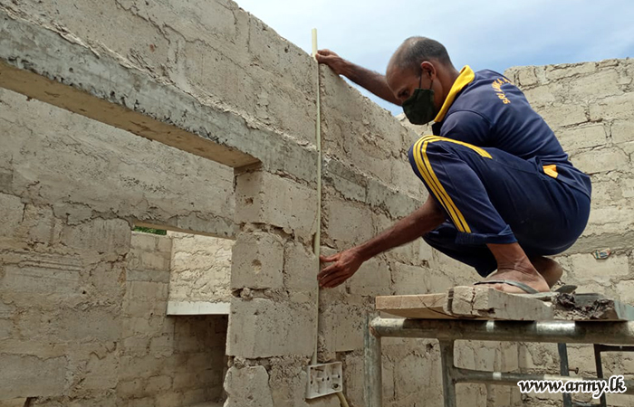 Construction of five more new houses for needy families is in progress in the general remote areas of Kilinochchi in keeping with instructions that have been issued by General Shavendra Silva, Chief of Defence Staff, Commander of the Army & Head, NOCPCO for enhancement of community-oriented projects with the objective of promoting reconciliation and goodwill between Security Forces and the general public.
