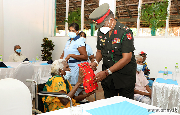 Officers and Other Ranks of the SFHQ (J) on account of the 25th Silver Jubilee of the SFHQ-J offered meals to the inmates at Mcleod Elders' Home at Inuvil, Jaffna on 20 June 2021 on the directions of Major General Priyantha Perera, Commander Security Forces- Jaffna.