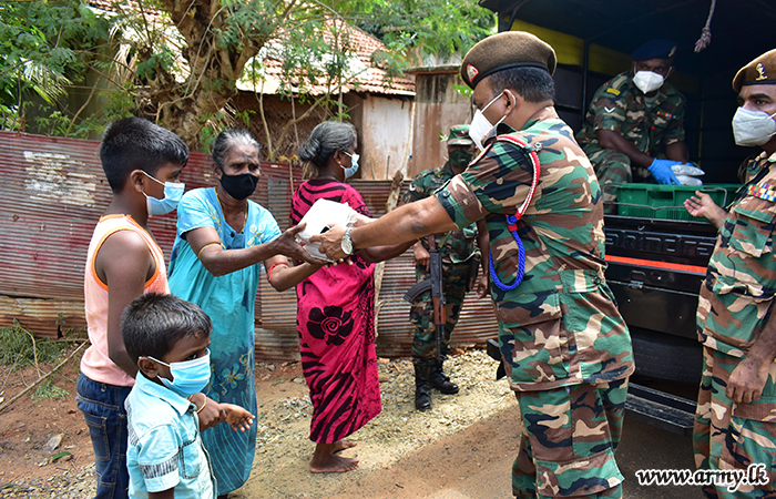 On account of the Poson Full Moon Poya Day (24), Officers and Other Ranks of the Headquarters 51 Division in Kopay, Jaffna launched a community care programme and donated dry ration packs and lunch packets to needy people in the area.
