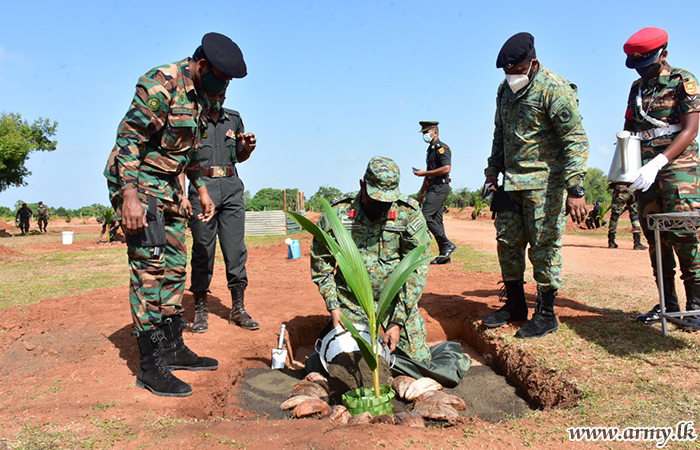 The Security Force Headquarters-Kilinochchi (SFHQ-KLN) premises were to go green planting 350 coconut seedlings, covering a large portion of its unused land extent inside the camp compound.