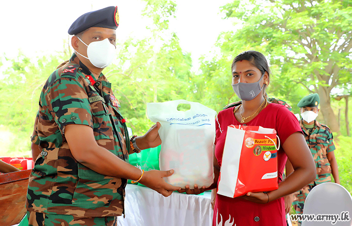Needy pregnant women who are employed in farms, managed by the Security Force Headquarters - Jaffna (SFHQ-J) were gifted with packets of dry rations and nutrients on Tuesday (22) on a suggestion, made by the Commander, Security Forces-Jaffna.
