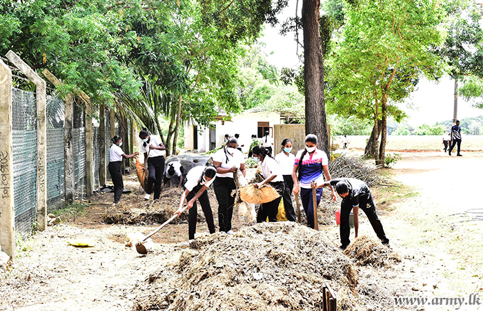 5 (V) Sri Lanka Woman’s Corps troops in keeping with the Presidential vision recently initiated a project to produce 160,000 kg of organic fertilizer on directives of the Commander Security Forces-East, Major General Channa Weerasuriya.