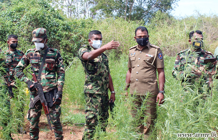 On information received from Military Intelligence, troops of the 20 Sri Lanka Sinha Regiment in the 12 Division under command to the Security Force HQ – Central on Monday (15) raided a Cannabis (Ganja) cultivation in the general area of Tanamalwila...