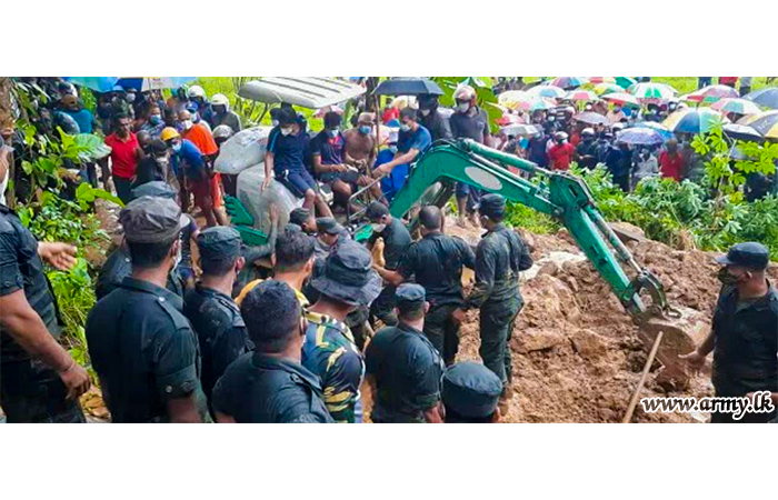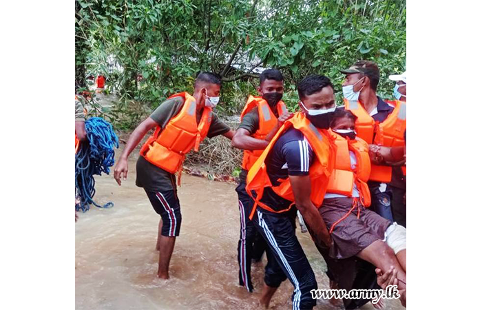 8 Sri Lanka Sinha Regiment (SLSR) troops under command to the 611 Brigade of the 61 Division under the Security Force HQ - West rushed this morning (5) to Dewanagala, Mawanella area to rescue a family, affected by earthslips and torrential rains.