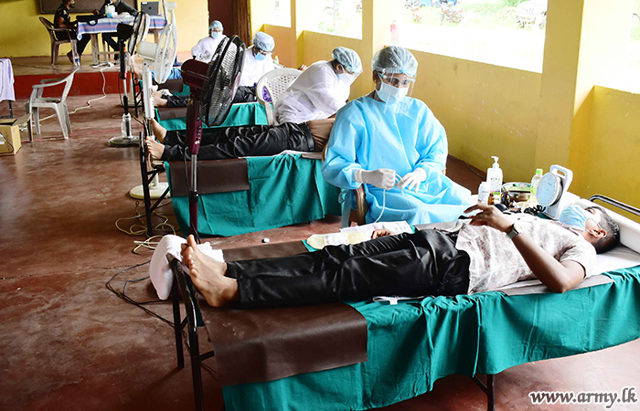 By responding to a request made by Ven. Serupitiye Ananda Thero, the Chief Incumbent at Monarathenna Temple, troops of the Security Force Headquarters-East volunteered to donate blood for the benefit of needy patients in Welikanda hospital on Sunday (23) at Monarathanna Temple, Welikanda.