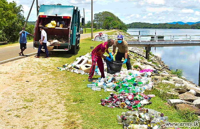 Troops of the Forward Maintenance Area - East (FMA-E) recently conducted a 'Shramadana' campaign around the Minneriya Mahasen Devalaya premises and the tank bund at Minneriya.