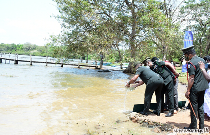 The inaugural release of fish shoals to the tanks at Mathwalasinghekulam and Kanukkerny in remote Mullaittivu areas took place on Wednesday (31) during a brief ceremony, led by Colonel Prabath Arachchige, Commander 592 Brigade as the Chief Guest.