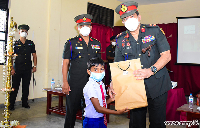 66 Division troops in Pooneryn in one more community project, launched with sponsorship from the ‘Nenasaviya’ charity organization at University of Colombo distributed school accessories...