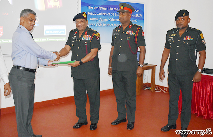 The Kaduruwela Commercial Bank branch considering the service of Army troops gifted a brand new sound set-up with sophisticated accessories to the 53 Division HQ in Habarana on Thursday (18).
