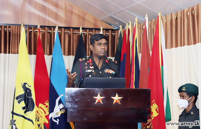 A lecture on the theme, 'No Army is better than its Soldier' as one segment of a series of educative lectures, planned at the Sri Lanka Army Volunteer Force (SLAVF) HQ got underway on Friday (19).