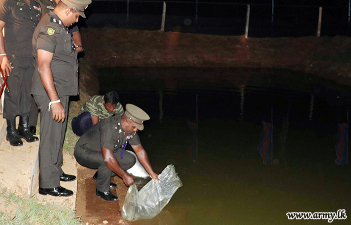 1st Sri Lanka Army General Service Corps (SLAGSC) troops released a shoal of 10,000 ornamental fish to the water reservoir inside the Detachment Kuttigala on Saturday (27) in order to stimulate troops wishing to rear fingerlings for commercial purposes.