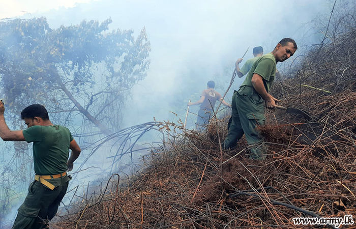 Troops of the 581 Brigade located in Maskeliya area brought a bushfire that erupted in Mocha Estate, Maskeliya under control on Thursday (18).