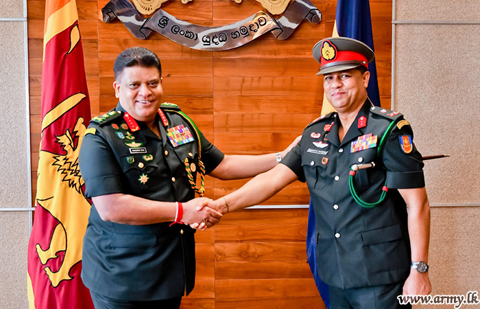 General Shavendra Silva, Chief of Defence Staff and Commander of the Army this afternoon (18) extended his best wishes to the new Chief of Staff, Major General Senarath Bandara when the latter paid his first courtesy call on the incumbent Commander...