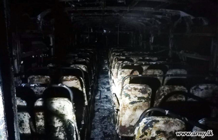 Army troops of the 17 (volunteer) Sri Lanka Light Infantry under command to the 651 Brigade of the Security Force HQ-Wanni doused a fire that broke out in a private bus while it was plying in the general area of Alankulama during small hours...
