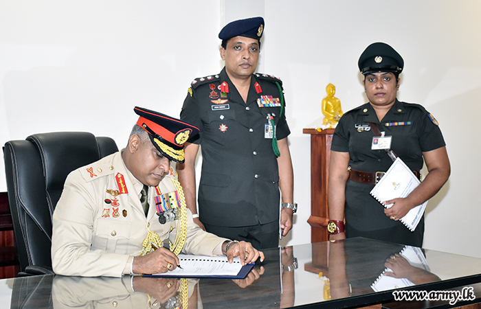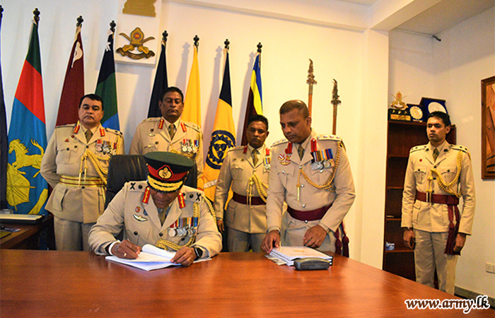 Major General Sanjaya Wanasinghe assumed office as the 32nd Adjutant General of the Army Headquarters on Tuesday (19) during a simple ceremony. The new Adjutant General left his signature for an official document, amidst religious observances...