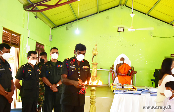 11 Sri Lanka Artillery (SLA) regiment troops of the 543 Brigade of the 54 Division under the Security Force HQ Wanni in Selvary Village, Talaimannar coordinated the distribution of school accessories and equipment required for the academic year 2021 among 28 students in Selvary village on Sunday (27).
