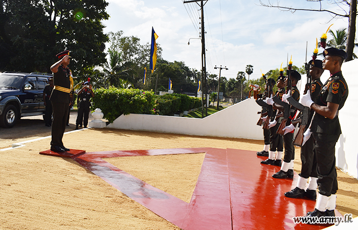 Brigadier Chamila Munasinghe, Commander Artillery Brigade made a field visit to the 9 Field Artillery Regiment at Sinhapura on Saturday (02). A drive-past Guard Turnout saluted the visiting Brigade Commander.