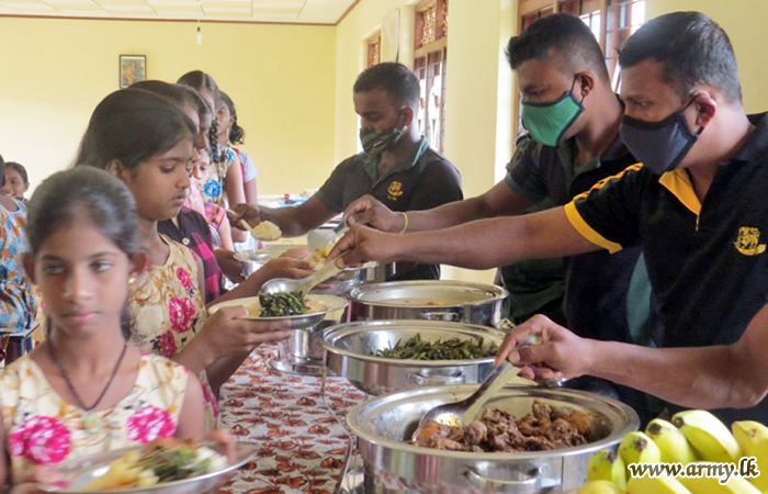 All ranks of the 24 Sri Lanka Sinha Regiment of the 591 Brigade serving under the 59 Division on Friday (4) entertained the children at Ladani Children’s Home in Silawaththa south to a lunch treat as part of their civil-military co-operation project.
