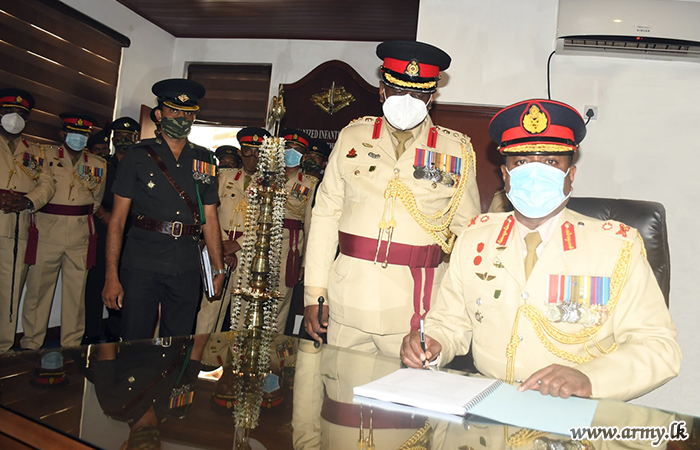 Brigadier Mohan Rathnayake of Gajaba Regiment assumed duties as the Director of the Directorate of Sports at Panagoda on Thursday (5). The newly-appointed Director left his signature for an official document to symbolize the acceptance of the new office after brief religious observances.