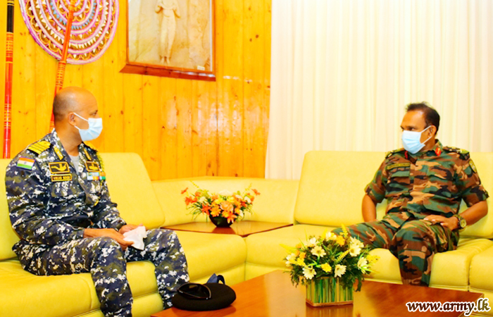 Captain Vikas Sood, Defence Advisor to the Indian High Commission of Sri Lanka as part of his familiarization visits paid a courtesy call on the Commander, Security Forces - East, Major General Chinthaka Gamage at the Security Force Headquarters - East on Tuesday (20).