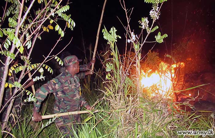 A platoon of troops of the Security Force Headquarters - Central (SFHQ-Cen) on the directions of the Commander Security Forces - Central, Major General Keerthi Costa rushed to Karagasthenna area in the Bandarawela Divisional Secretariat on Monday (05) and doused a fast-spreading bushfire in the area.