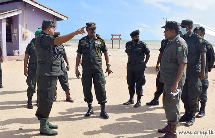 Major General Dhammika Jayasinghe, Commander, Security Forces - Wanni on Saturday (26) toured 54 Division area of responsibility in Mannar to take stock of the security situation and supportive raids,