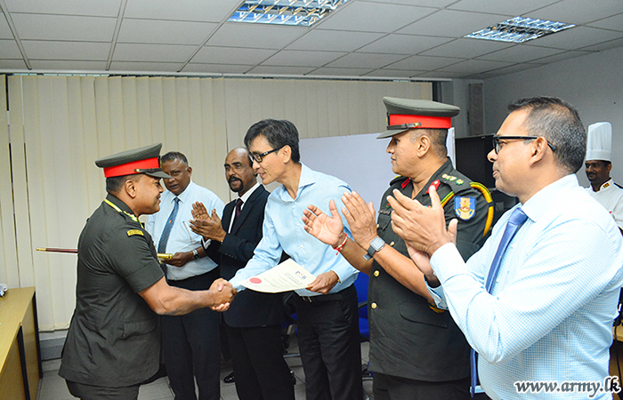 The Army Seva Vanitha Unit - initiated and coordinated Bakery Course for 40 Army personnel conducted by the Prima Bakery Training Centre (PBTC) at Rajagiriya culminated on Friday (25) after award of certificates to the course attendees.
