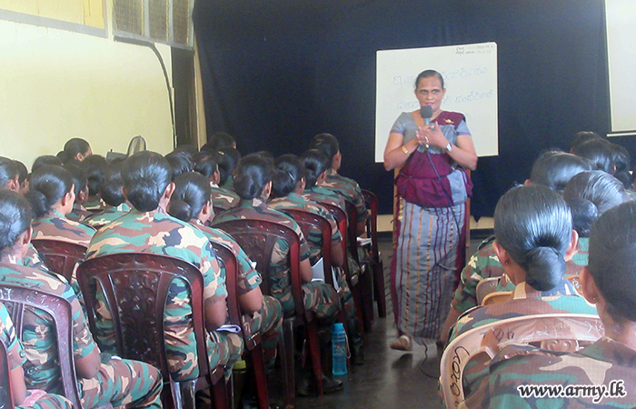 Brigadier Manjula Karunarathna Director Psychological Operations and Lieutenant Colonel B.G.S Samanthi of the same Directorate delivered lectures to woman soldiers in the 5 (volunteer) Sri Lanka Army Womens Corps (SLAWC) and woman soldiers in the SLAWC Training School in Sandunpura during 16-17 September.
