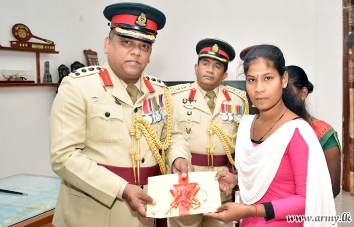 Troops of the 23 Vijayabhau Infantry Regiment (VIR) of the 642 Brigade in the 64 Division of the Security Force HQ-Mullaittivu adding their share to the uplift of poor civilians on Tuesday (15) organized financial donations to two underprivileged students who have been qualified to enter the university for studies through overseas-based philanthropists.