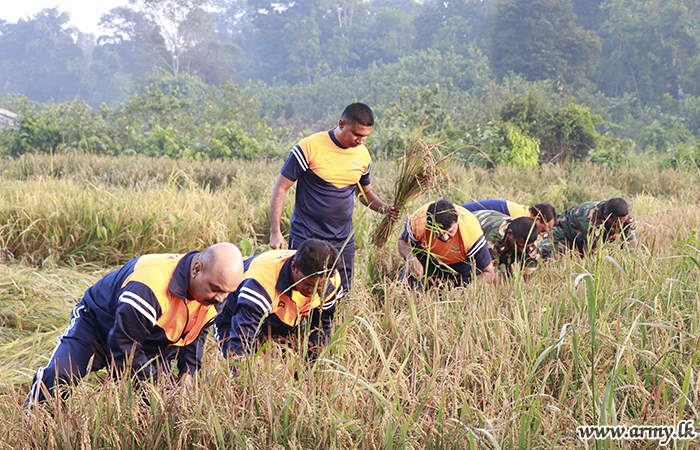 Reaping of the maiden paddy harvest in the Panaluwa - Thunnana fields, cultivated by troops of the Security Forces - West took place this morning (18), giving pride of place to traditions and religious rites. Major General Jayantha Senevirathna....