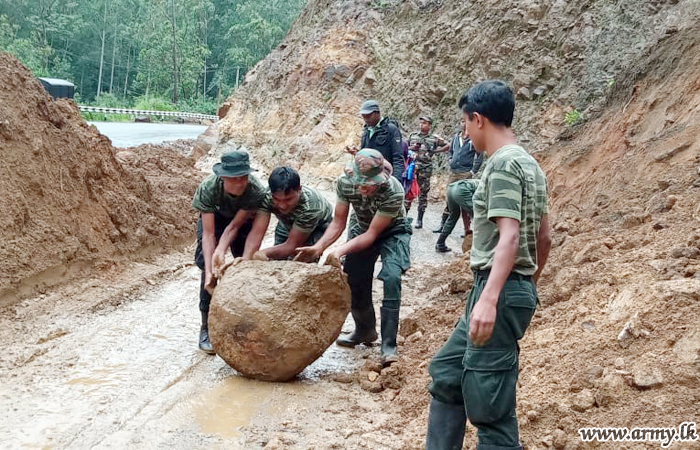 Around 10.45 am on Sunday (9), 19 Sri Lanka National Guard (SLNG) troops under command to the 112 Brigade and the 11 Division of the Security Force Headquarters - Central (SFHQ-Cen) rushed to Maussakele area and cleared a mound of earth that has blocked the Maussakele (B 149) road...