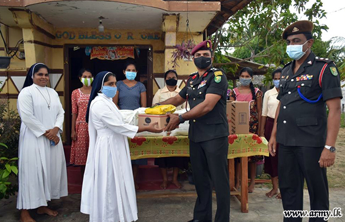 Sponsorship extended by Puttalam-based ‘Muslim Hand Organization’ to the 54 Division HQ in Mannar enabled free distribution of 50 kg of wheat flour, 20 kg of red rice, 14 kg of biscuits and 04 kg of tea bags among children orphanages and elders’ home in Mannar.