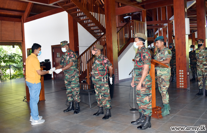 A group of 6 Sri Lankan Singapore-based expatriates, impressed with the Army management of the Quarantine Centre at Paradise Hotel at Habarana, made a cash donation towards the Presidential Secretariat’s ‘COVID-19’ Fund through the 53 Division HQ at Habarana on Thursday (23).