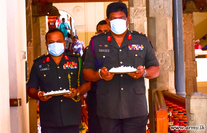 Major General Keerthi Costa after his recent assumption of duties as the Commander, Security Forces - Central (SF-Cen) on Thursday (23) paid his homage to the most sacred Sri Dalada Maligawa (Temple of Tooth) in Kandy and called on Mahanayake Theros (High Prelates) of Malwatte and Asgiriya Chapters in keeping with age-old traditions.