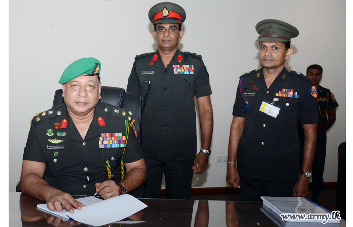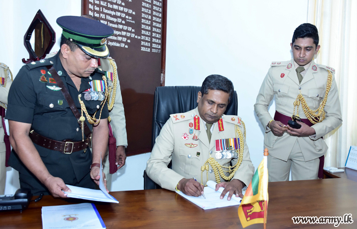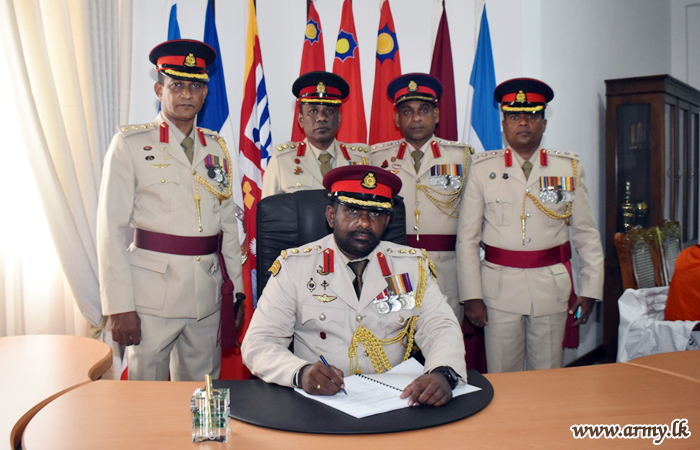 Brigadier Mohan Rathnayake of Gajaba Regiment this morning (20) took office as Director Movement at Directorate of Movement in a simple ceremony. To signify the acceptance of his new office, he left his signature for an official document.