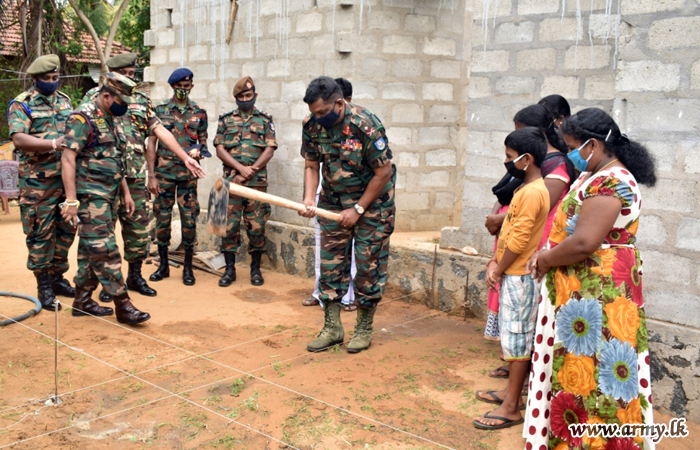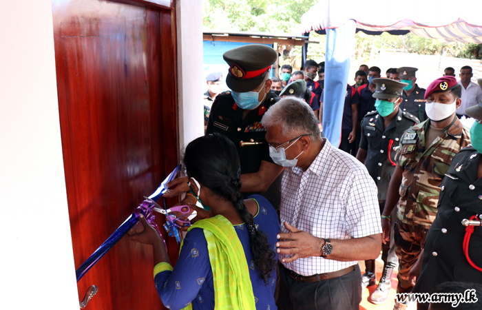 Troops of the 593 Brigade under the 59 Division HQ with the generosity, extended by a philanthropist in the area volunteered to complete the partly-built house of the civilian, Gnanaprakasham Mariyadasan, resident in the Tsunami housing scheme in Wemmale East, Nayaru.