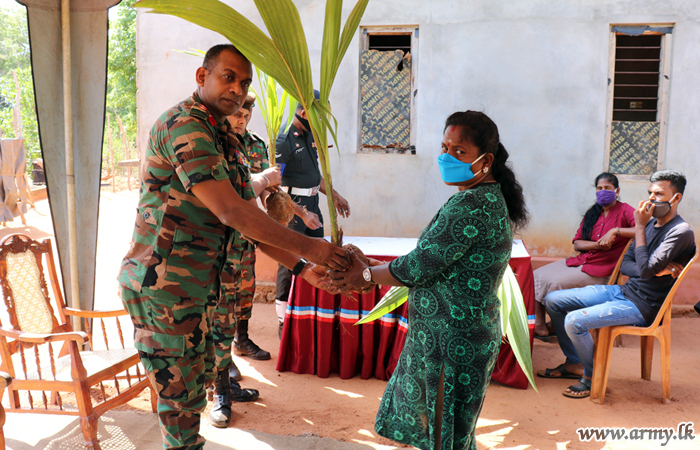 682 Brigade troops under the 68 Division of the Security Force HQ - Mullaittivu with the aim of improving economic standards of poor people in the area gave away 90 coconut saplings among 30 families, resident in Maligathivu Grama Niladhari Division...