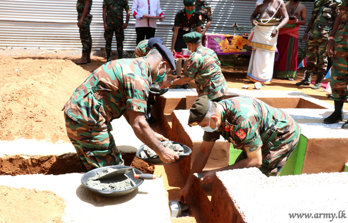 Major General Ruwan Wanigasooriya, Commander, Security Forces - Jaffna continuing the Security Force Headquarters - Jaffna’s house construction project further for the benefit of poor people laid the foundation stone for construction....