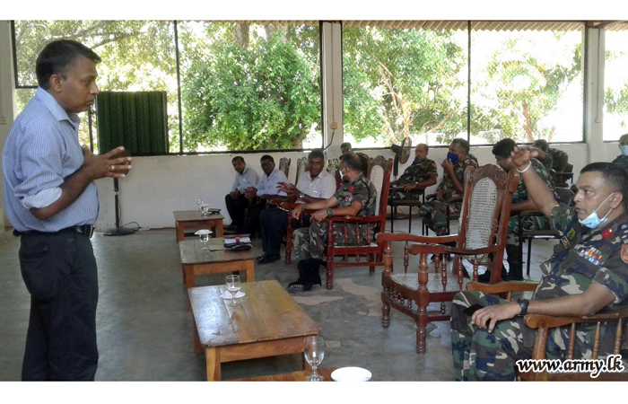 An awareness programme on prevention measures of COVID- 19 outbreak and its transmission was conducted at Headquarters 571 Brigade on Thursday (19). Regional Director of Health Services - Kilinochchi, Regional Doctor of Epidemiology, Medical Officers of Health -Karachchi and Kandawali Divisional Secretariats conducted awareness lectures and programmes at the request of Major General D.G.S SenerathYapa, General Officer Commanding, 57 Division