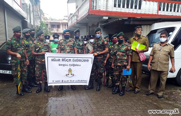 In parallel with the ongoing island-wide Dengue prevention campaign, troops of the 111 Brigade under the 11 Division carried out a cleaning project on Saturday (13) in the general areas of Dodamwala, Muruthalawa, Mahakanda and Kengalla with the support of Health Inspectors and civilians.