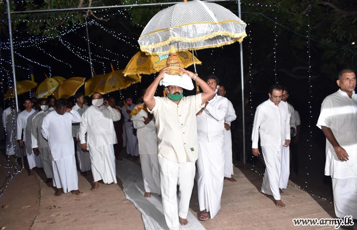 65 Division troops under command to the Security Force HQ- Kilinochchi added their share to the commemoration of the Poson festival – 2020 under the guidance of Major General D.M.H.D Bandara, General Officer Commanding, 65 Division on Friday (5).