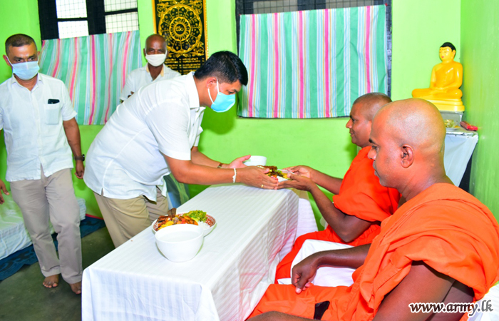 To coincide with the Poson Full Moon Poya Day, SFHQ -East troops under the guidance of the Commander Security Forces-East, Major General Senarath Bandara, offered alms to the monks at the Welikanda Buddhist Centre on Friday (5) on account of the Poson Day.