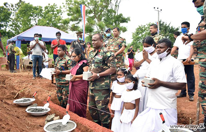 Security Force Headquarters - Wanni taking another step forward in their house-construction project for needy people laid the foundation stone for one more new house to Mr S.P Lionel Senevirathna....