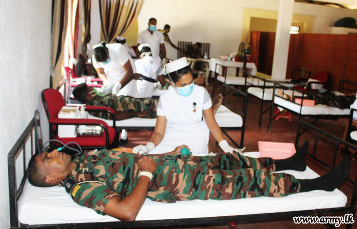 Troops of the 22 Division of the Security Force Headquarters - East (SFHQ - E) considering prevailing shortage of blood for emergencies in hospitals staged a blood donation project at the 6 Sri Lanka Armoured Corps....