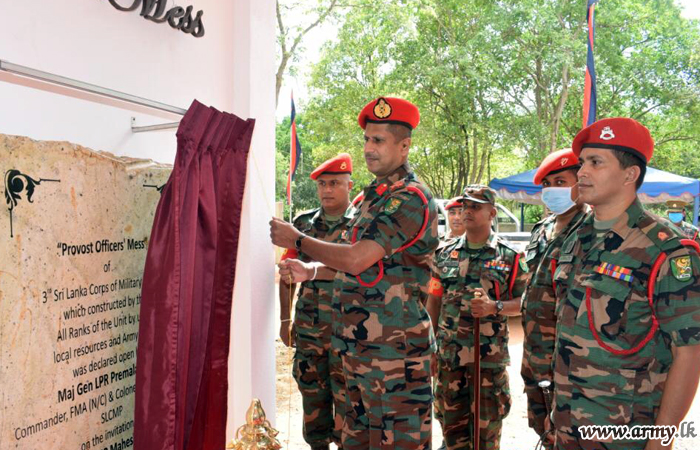 The newly-constructed Provost Officers’ Mess of the 3 Sri Lanka Corps of Military Police Headquarters (SLCMP) at Galkulama, Anuradhapura was vested in the Officers on Friday (22) during a brief ceremony.