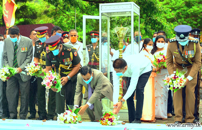 A simple commemorative ceremony on National War Heroes' Day (19) to coincide with the main ceremony at Battaramulla took place at Mailapitiya Ranaviru park in Kandy as the Central province event. Governor for Central Province, Lalith U Gamage attended as the Chief Guest, together with tri service and Police officers.
