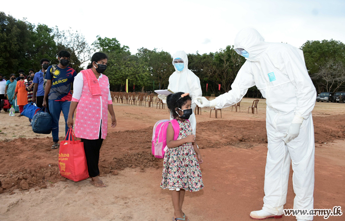 Upon completion of the quarantine process of more than 3 weeks, one more group of 408 individuals proceeded back home from the Army-managed Punani (94), Mullaittivu (129), the Air Force- managed Iranamadu (175) and the Navy-run Boossa (10) Quarantine...