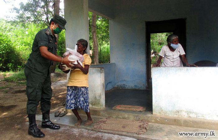 143 Brigade troops based in Thabbowa, Puttalam area in the wake of the Vesak week assisted needy families in Mahakumbukkadawala and Pallama divisional secretariat areas donating 100 dry ration packs, each worth Rs 1500 on Tuesday (5).