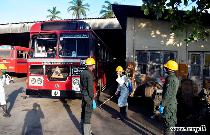 Troops under command to 51, 52 and 55 Divisions of the Security Force HQ - Jaffna are continuing with their ongoing disinfection of public places and institutes in Chunnakam, Kokuvil, Chanakanai, Tellippalai, Nallur, Uduvil, Thirunelveli, Velvettithurai...