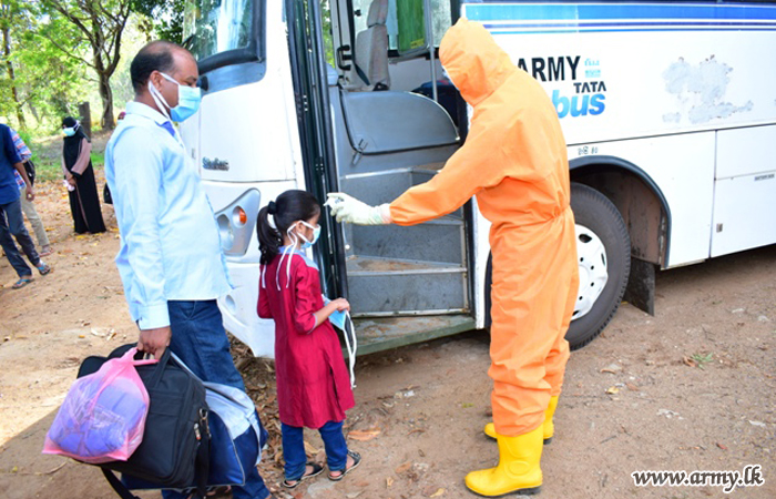 One more group of 77 individuals who underwent the quarantine process of more than 3 weeks proceeded back home from the Punani and Damminna Quarantine Centres (QC) this morning (28) after necessary medical formalities and receipt of quarantine certificates.